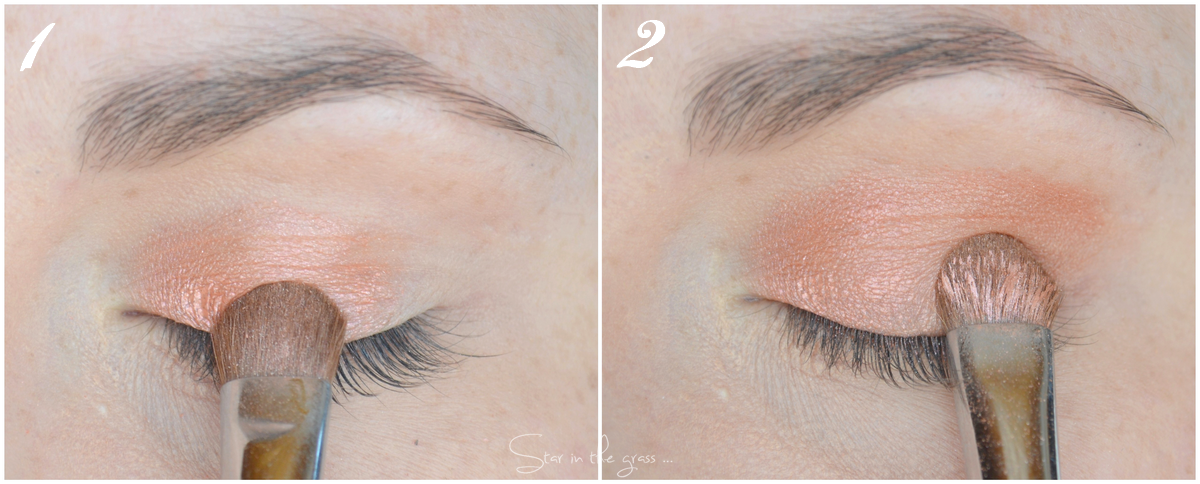 je viens appliquer le 3ème fard de la palette tout en le fondant avec le 2ème fard : un brun orangé.